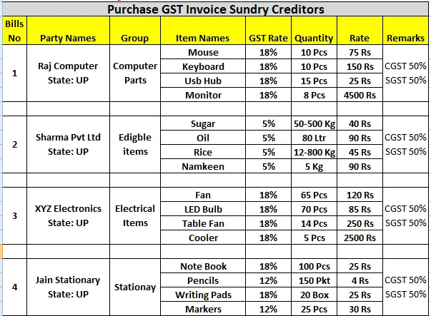 Purchase GST Invoice Sundry Creditors